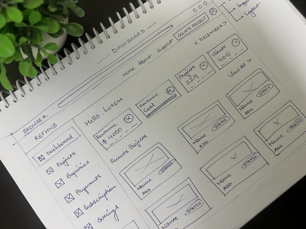 To visualize the platform’s layout and structure, I started with low-fidelity wireframes on paper, exploring ideas and user flows. Once finalized, I created high-fidelity wireframes on Miro for a polished and interactive representation. This process ensured alignment with the Information Architecture and provided a solid foundation for feedback.