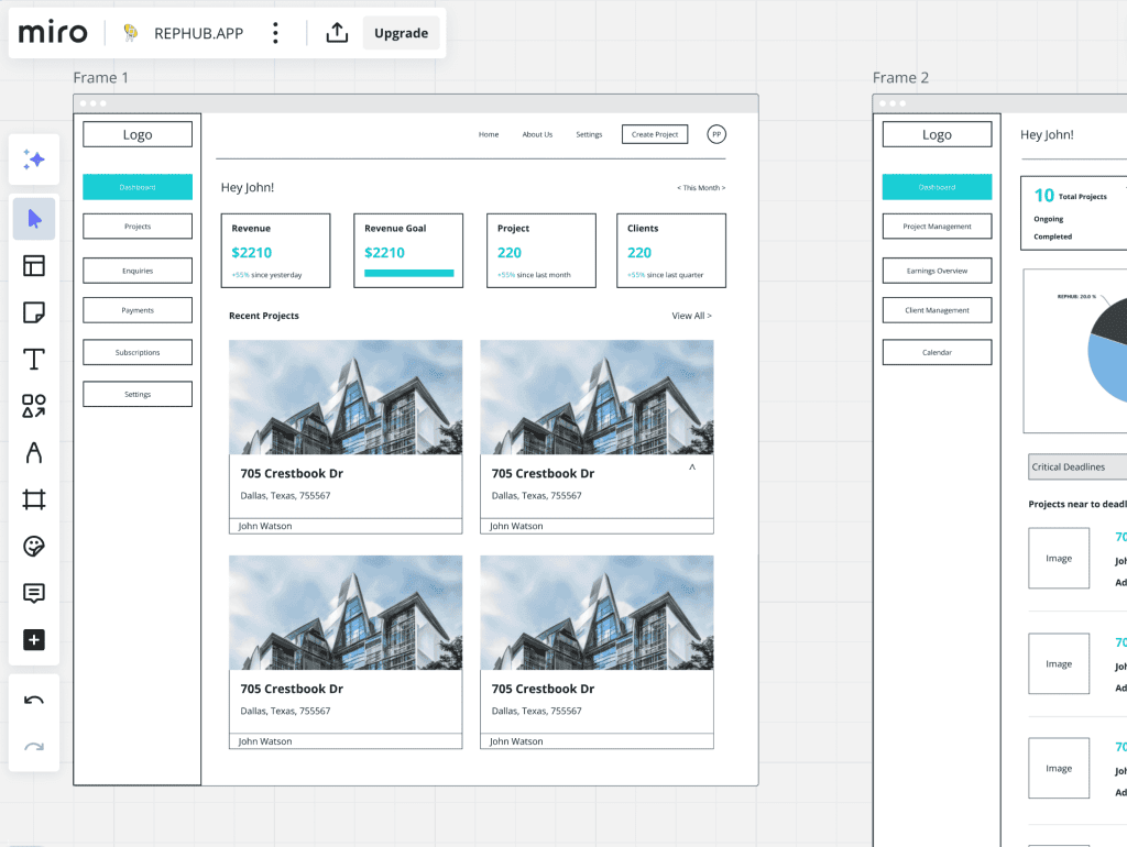 To visualize the platform’s layout and structure, I started with low-fidelity wireframes on paper, exploring ideas and user flows. Once finalized, I created high-fidelity wireframes on Miro for a polished and interactive representation. This process ensured alignment with the Information Architecture and provided a solid foundation for feedback.